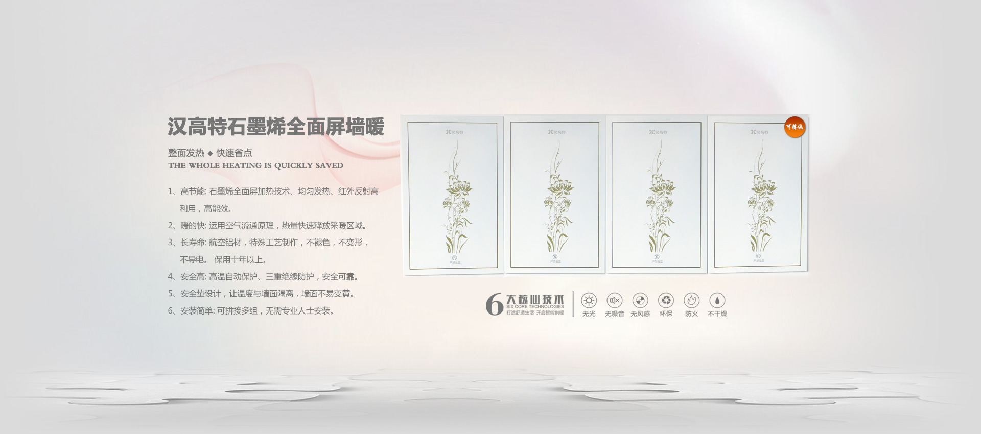 漢高特自主研發(fā)的新型石墨烯電地暖、石墨烯電采暖、電熱膜電地暖、碳纖維電暖、碳晶墻暖畫、電地暖廠家加盟、電熱膜工廠,采用新設計、新材料在行業(yè)內首創(chuàng)了耐強酸、耐強堿、防火阻燃、防水防潮等特點。產品暢銷江蘇、四川、甘肅、山西、河北、河南、內蒙、新疆等地。